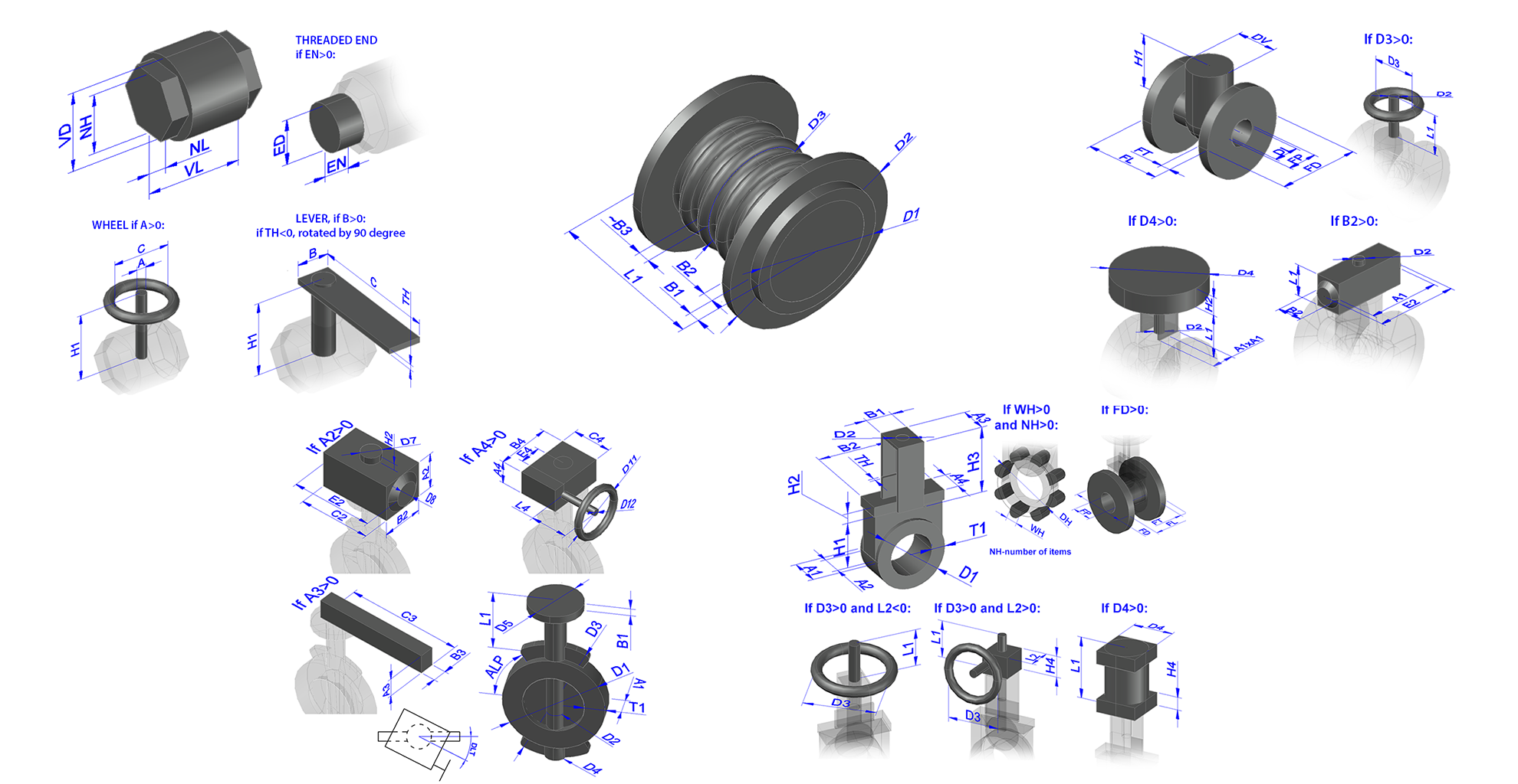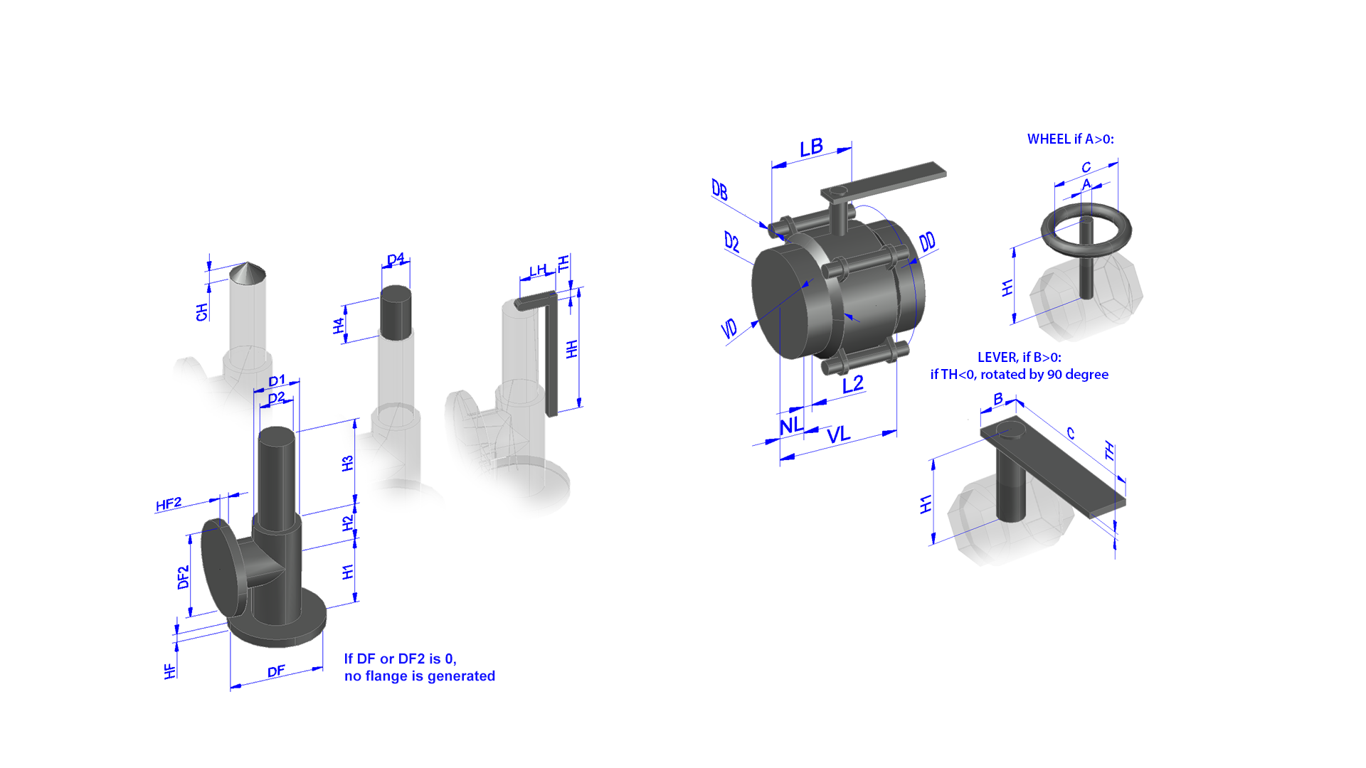 Using the Python Valves allows for us to use the same valve for various situations, ie you can set the parameters to use lever, handwheel or gear, flanges or SW.