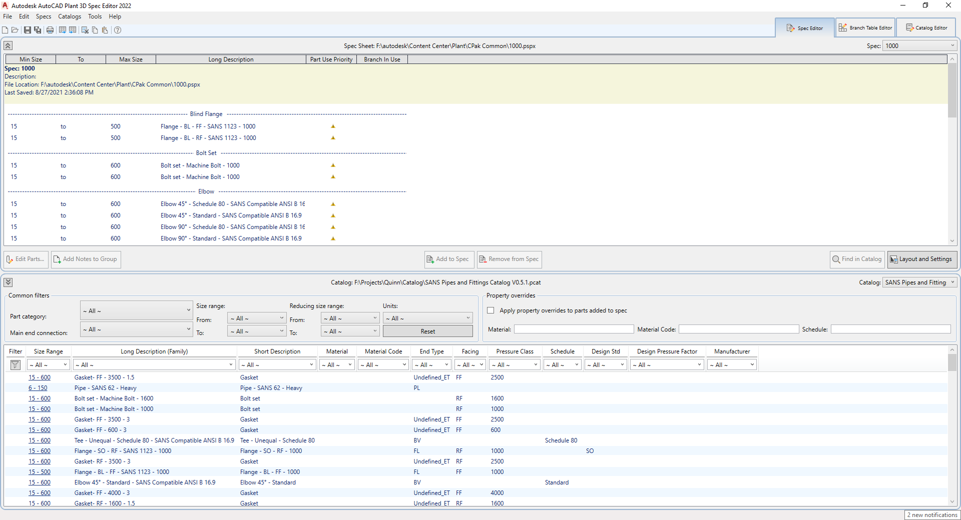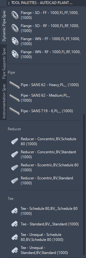 SANS (South African) pipes and fitting library for Autodesk® AutoCAD® Plant 3D.