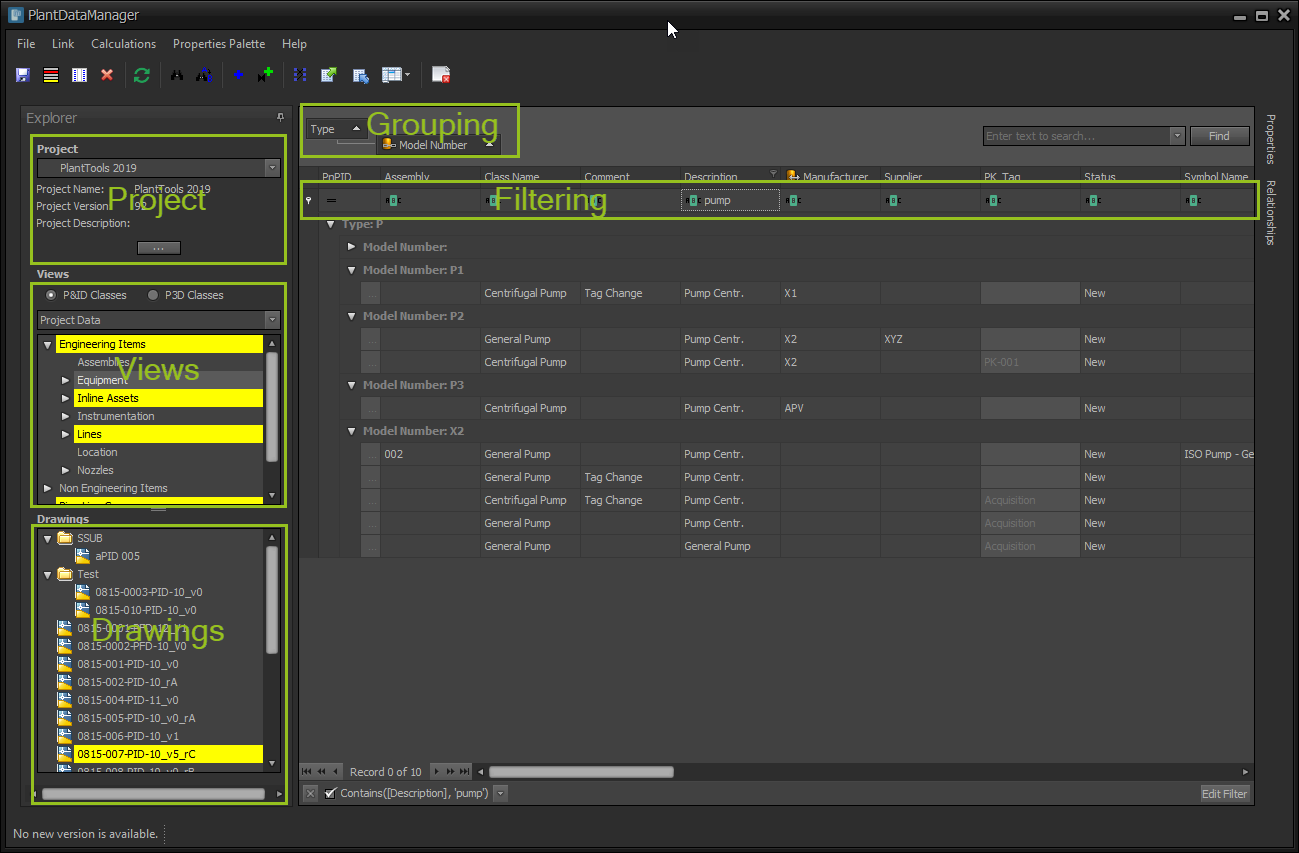 Extending the functionality of AutoCAD Plant 3D further, PlantDataManager also allows users to define and create relationships between plant project objects. Relationships can be defined between graphical objects and NPOs.