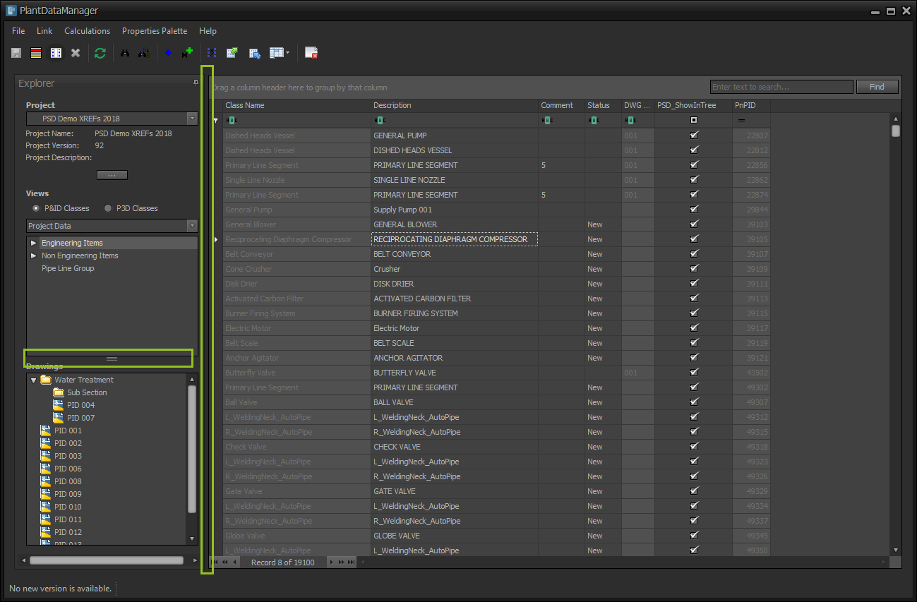 With PlantDataManager, project engineers, process engineers, instrumentation engineers, and designers can access plant project data in an intuitive tabular user interface. PlantDataManager allows multiple users to edit project data even while the drawings containing the data are open in production.