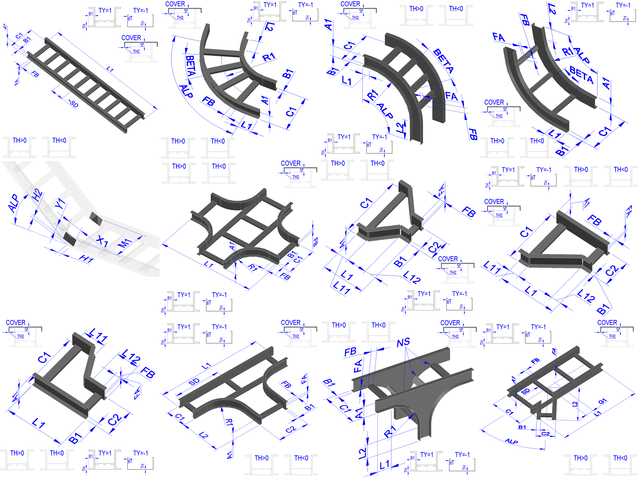 Very useful for adding cable trays for our 3D model. Easy to change sizes, both lenth and width. Just use the faq page with very good explanation for how to do everything. Very much recomended!