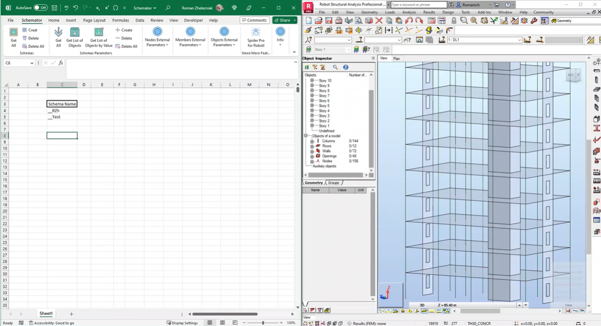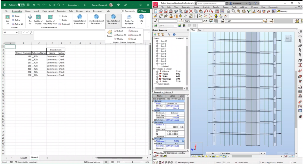 This Schemator is developed to extend the operability of the Autodesk® Robot Structural Analysis™ Professional by adding custom user parameters (known as External Parameters) to the model. The user interface of the Schemator is organized in logical order – the first step is to define a schema, then define and add parameters to the schema and the last step is to assign parameters to nodes, members, or objects in the model.