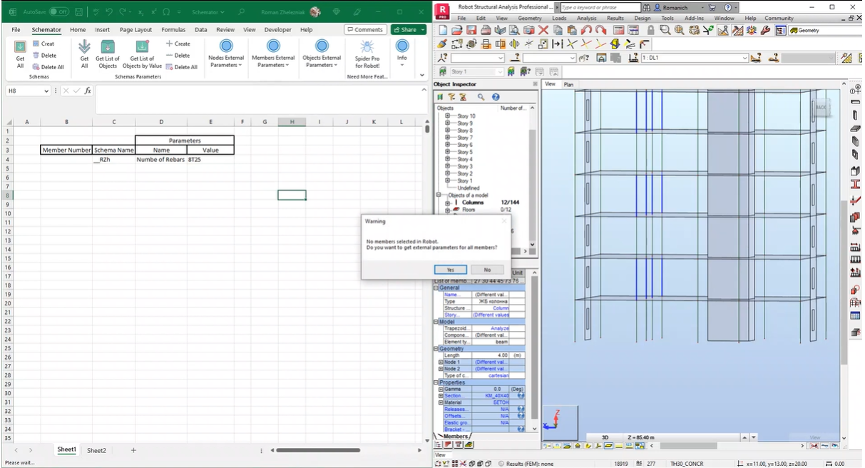 This Schemator is developed to extend the operability of the Autodesk® Robot Structural Analysis™ Professional by adding custom user parameters (known as External Parameters) to the model. The user interface of the Schemator is organized in logical order – the first step is to define a schema, then define and add parameters to the schema and the last step is to assign parameters to nodes, members, or objects in the model.