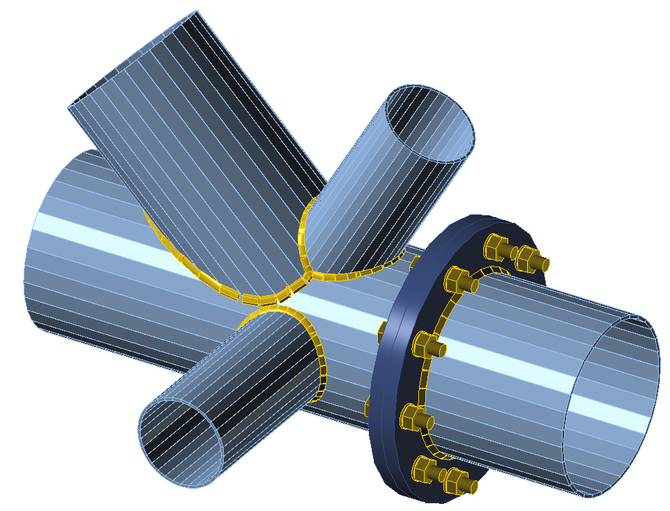- Nonlinear analysis of steel profiles and plates, bolts in tension and shear, welds, and pins. 2D or 3D loading