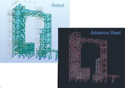 Conversely, you can export a model from Advance Steel in order to perform structural analysis and code checking in Robot.