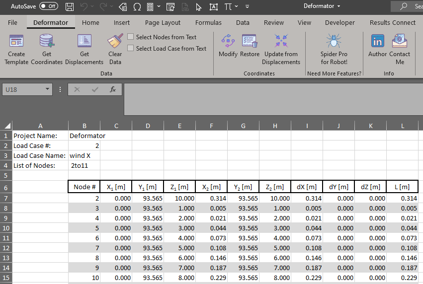 The app allows you to modify the existing geometry of the structure by changing the coordinates of nodes based on the displacement obtained from the results for the selected load case.