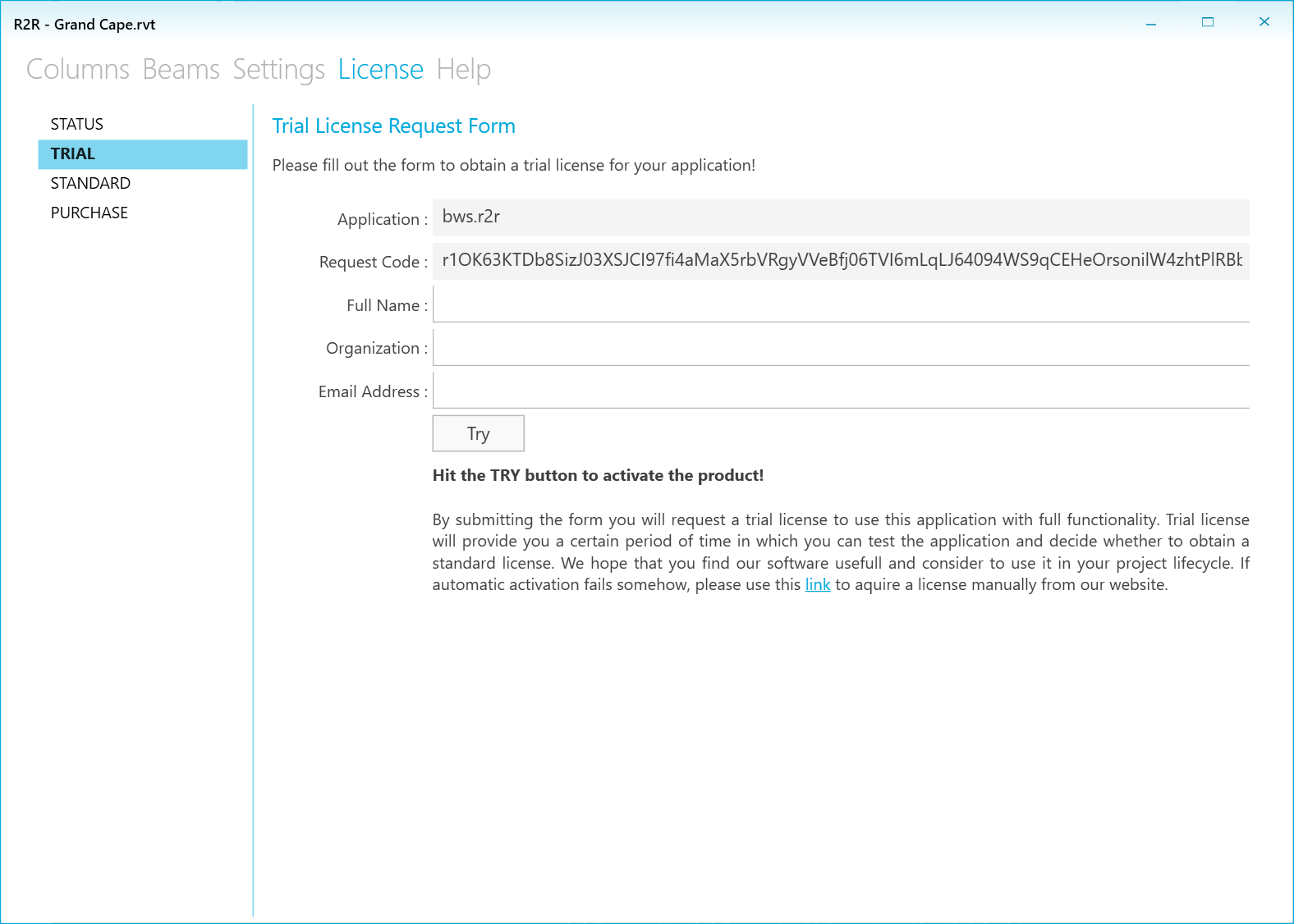 - To access the full features, you can activate a 30-day free trial via the License - Trial tab. Simply fill out the form and click TRY.