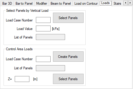 - Select panels according to the applied vertical load value. The selection is limited to planar load and uniform planar load on a contour.