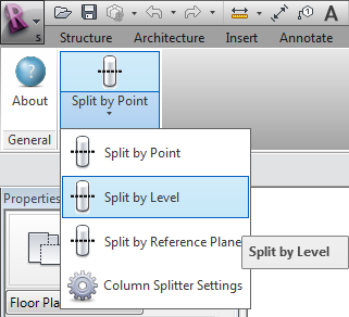 Splits one or multiple structural or architectural columns by point(s), level(s), or reference plane(s) with specified gap offsets.
