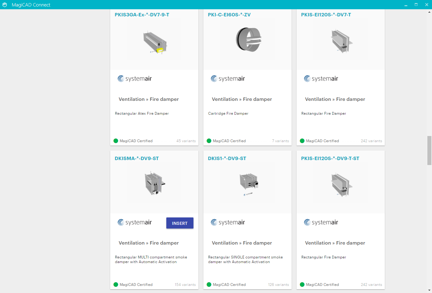 When the selection tools are accessed via MagiCAD Connect, the selected products can be inserted directly into the Revit project in user-defined product sizes and dimensions. MagiCAD Cloud is currently the only BIM platform to offer online selection and configuration tools for MEP products.