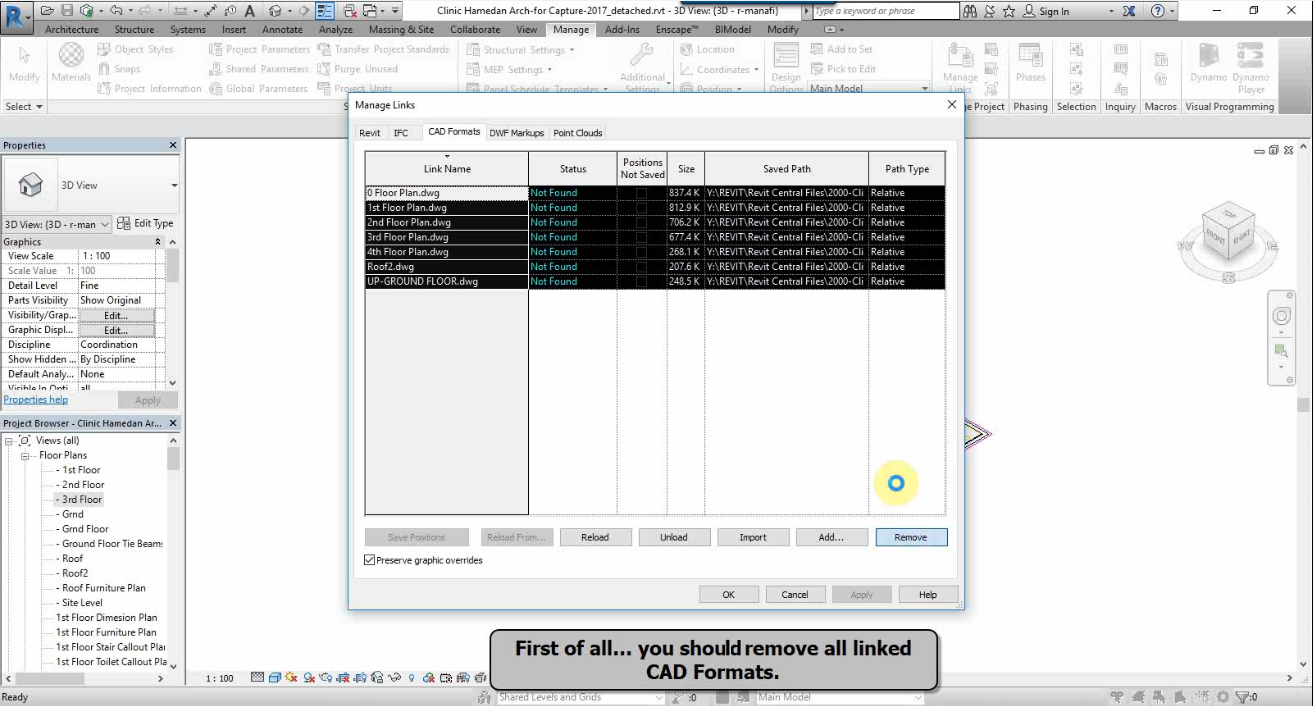 Removing Autodesk® AutoCAD® imports from an Autodesk® Revit® file is a frustrating procedure. Whether these files are imported or linked, you must use different methods to remove them and if they are pinned or embedded in the model you have more works to do.