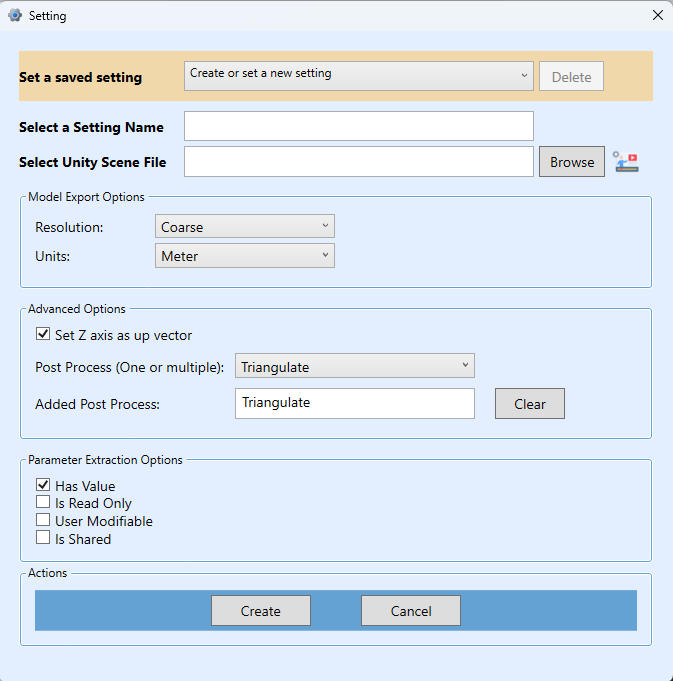 Model Export – Export Revit models to Unity with color materials, directly importing them into a selected Unity project.