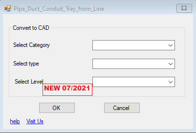 This tool is designed to convert the lines into (Pipes, Ducts, Conduits and Cable Trays) from CAD exploded (2d or 3d) lines or from Autodesk® Revit® lines.