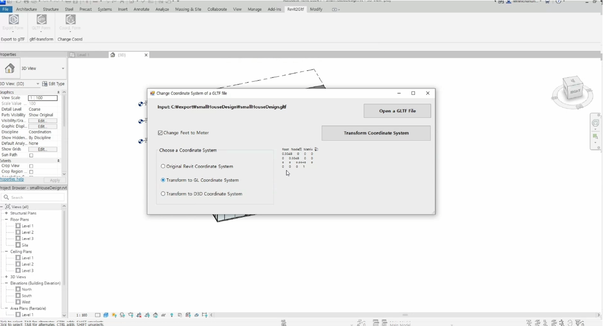 3. Change Coordinate Form: A function to convert the length unit and coordinate system of GLTF and GLB files.