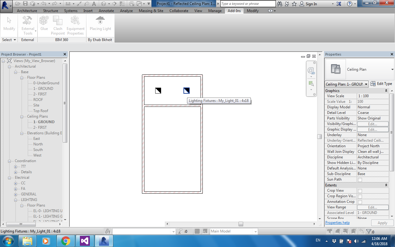 First - Select hosted light fixture in the false ceiling or Reference Plane.