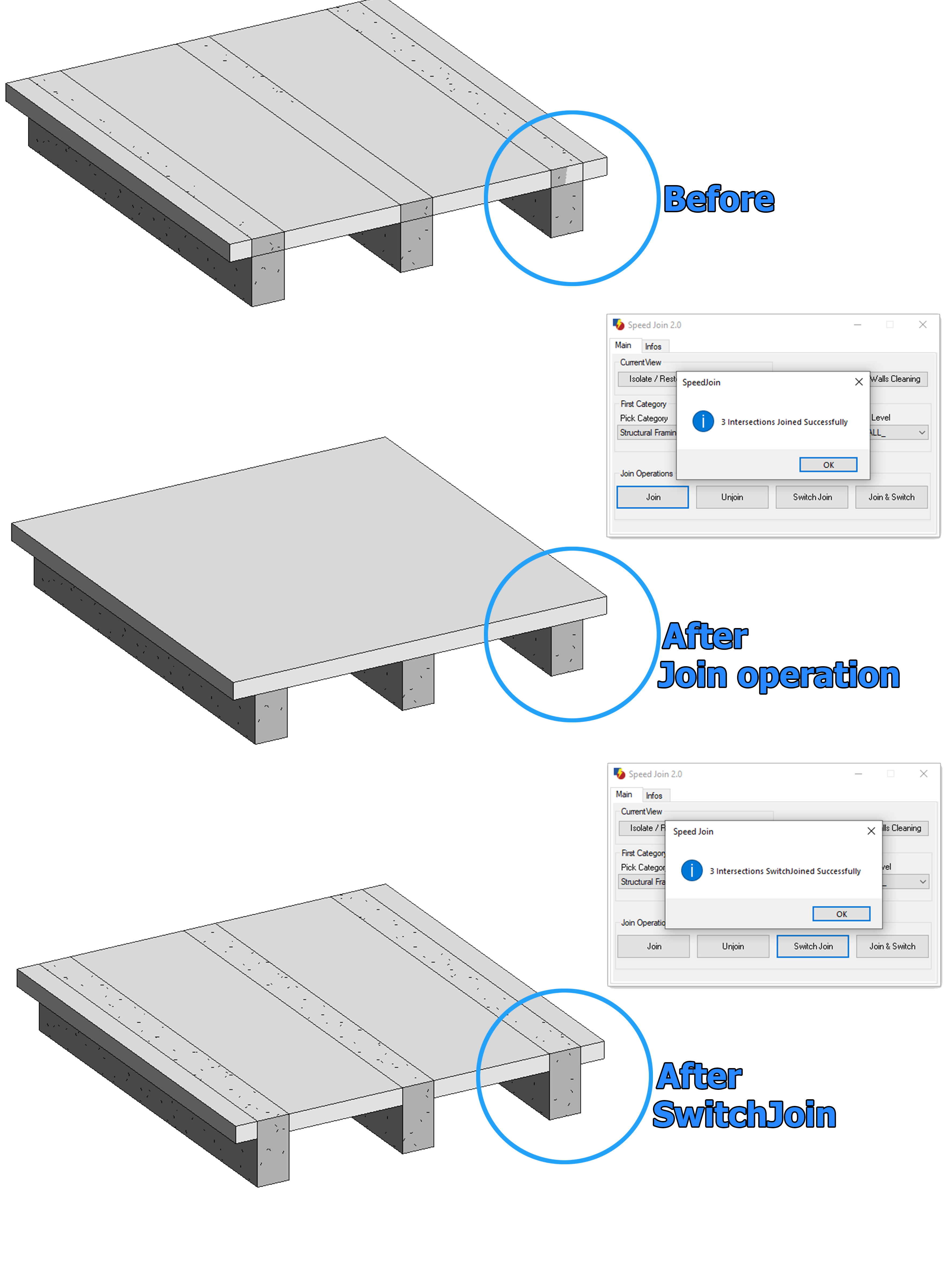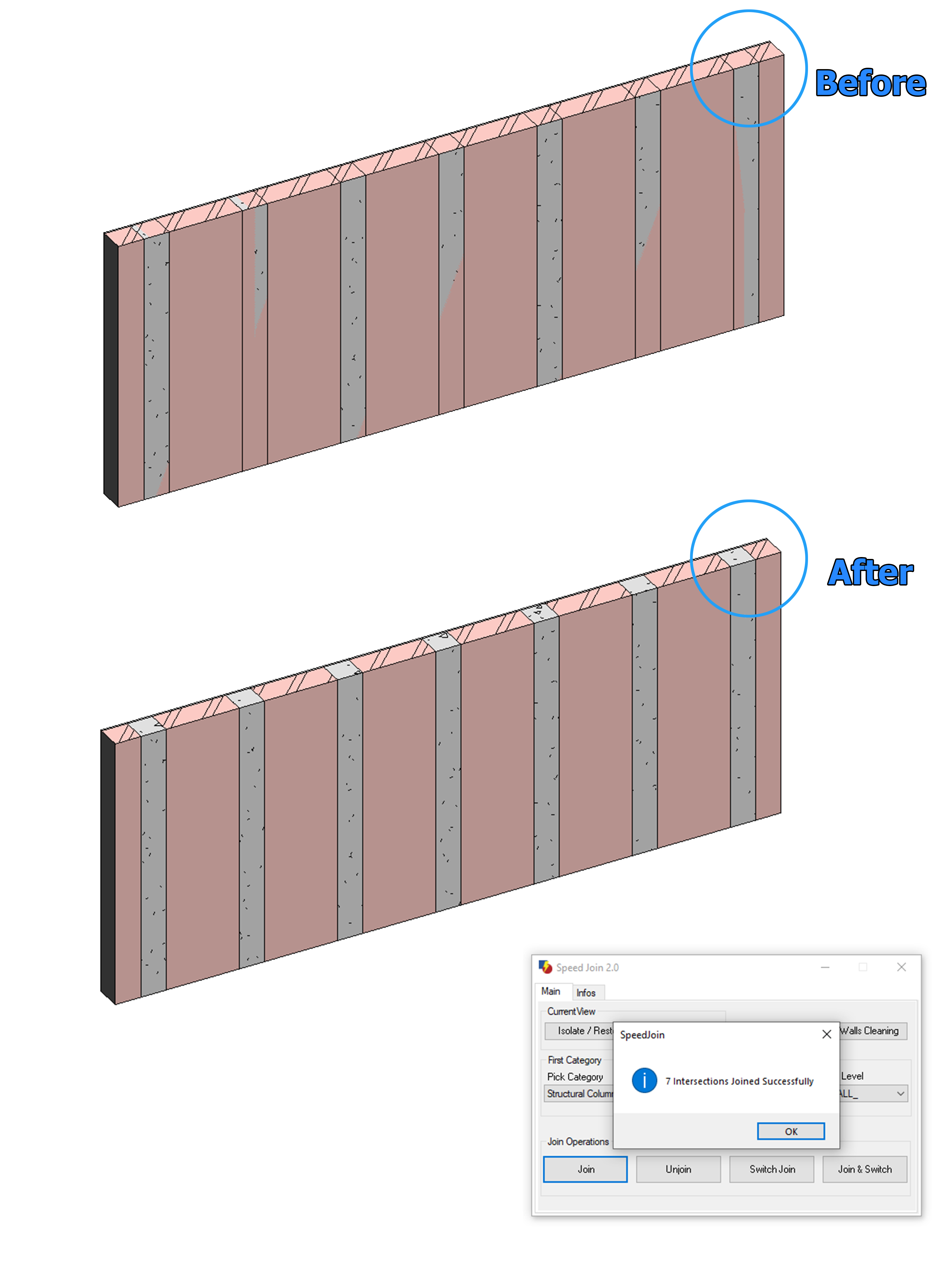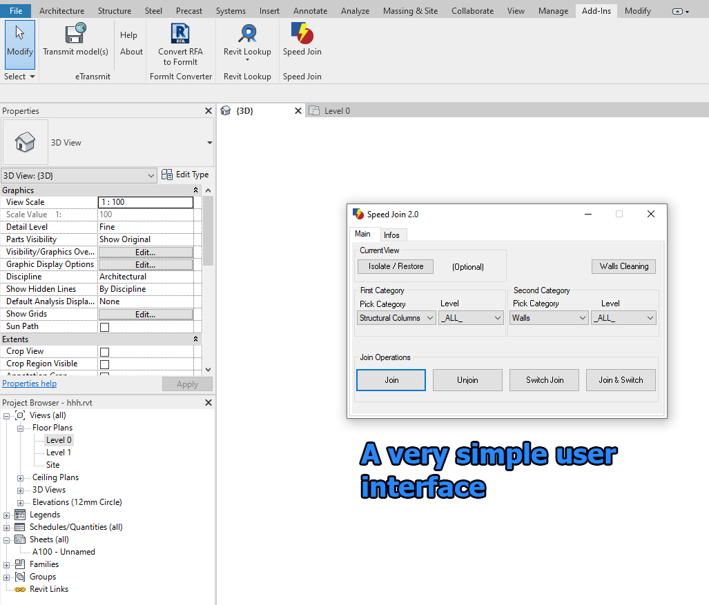 SpeedJoin for Autodesk® Revit® is a minimalist Addin that helps users to do in just three clicks what normally took hundreds of clicks and a lot of time. With a very powerful algorithm, speed up your tasks and work smarter and faster.