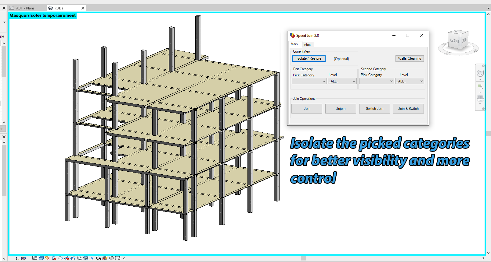 - You can verify that your elements are correctly joined with Isolate/Restore button that isolates temporarily the two categories.
