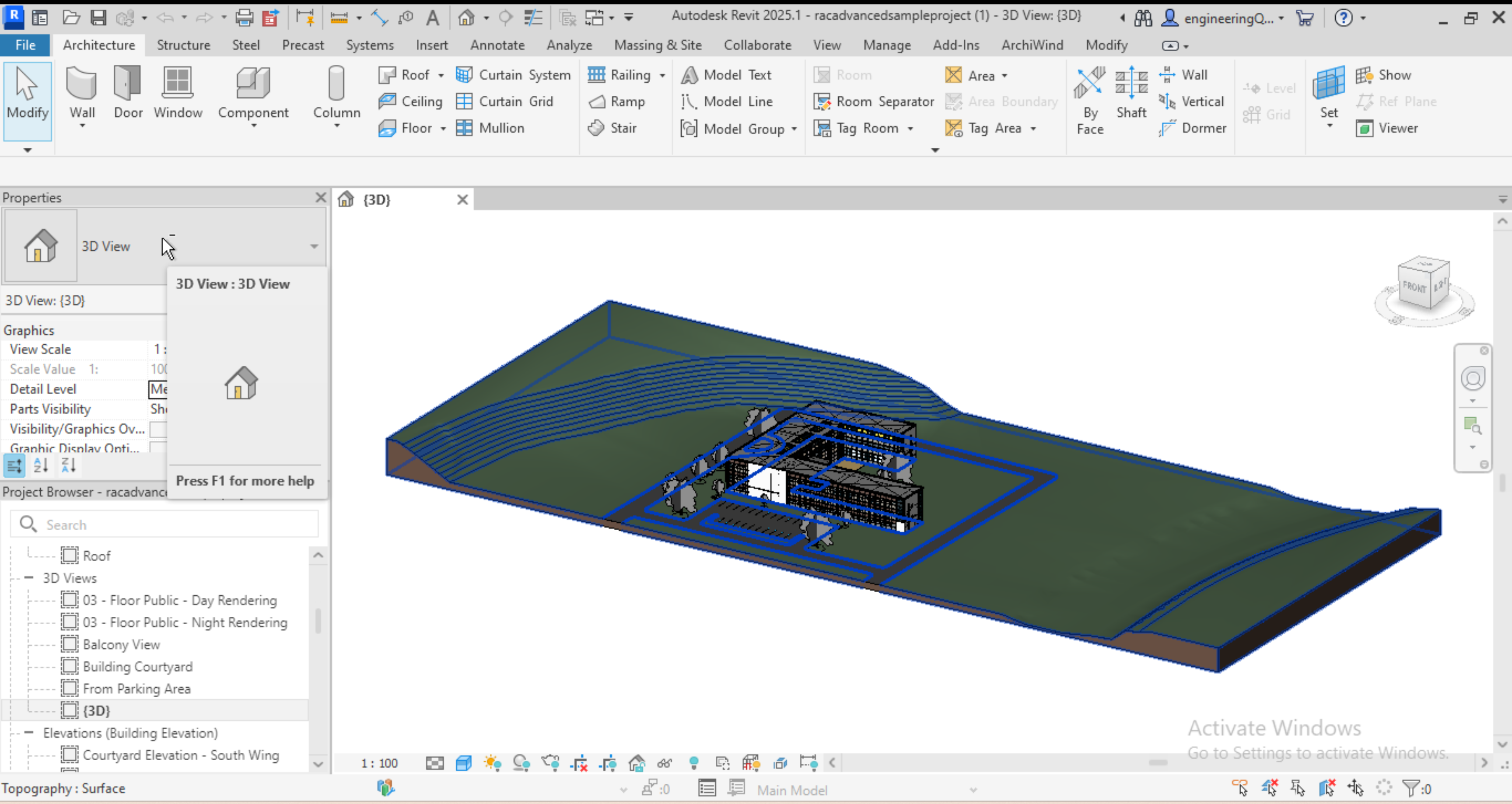 - Building: Includes elements such as floors, doors, ceilings, roofs, windows, mass, railings, walls, and stairs.
