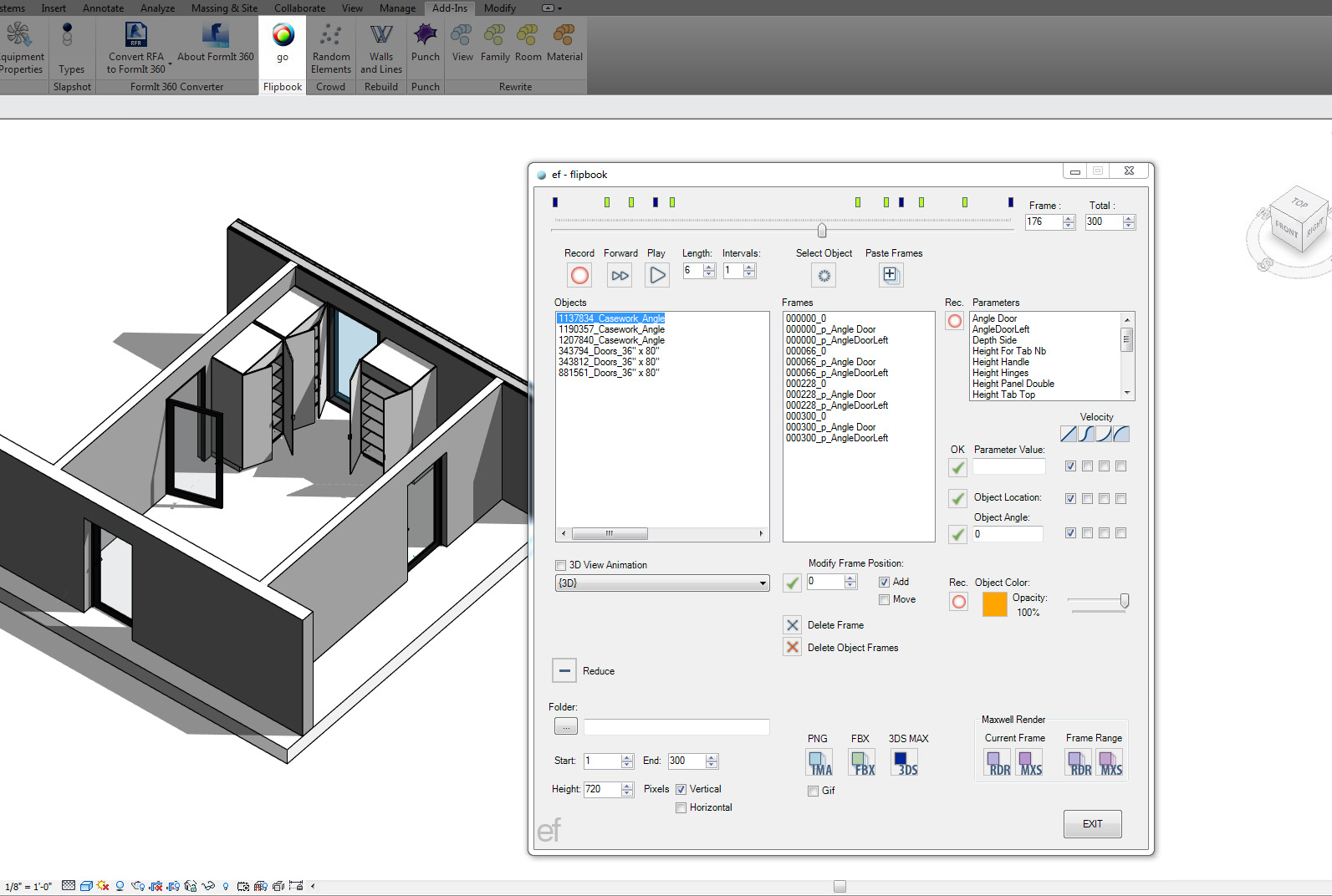 Create animations with Flipbook for Autodesk® Revit®. Control movement of objects and cameras dynamically in a Revit project with the use of keyframes.