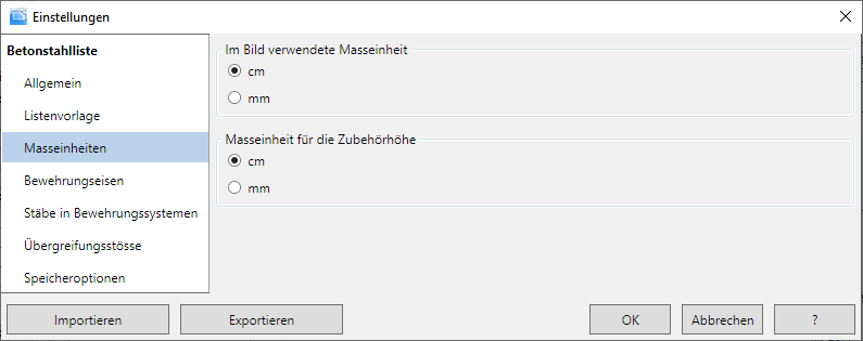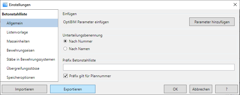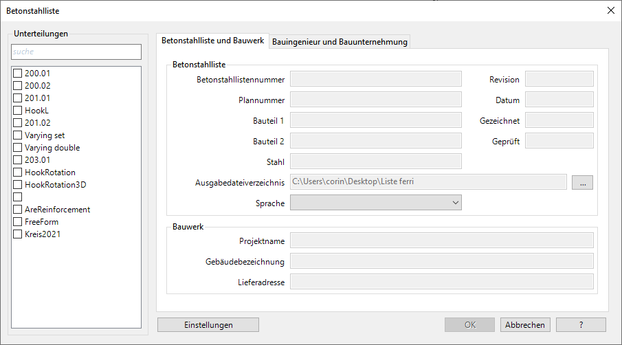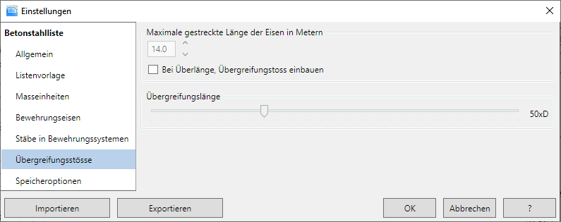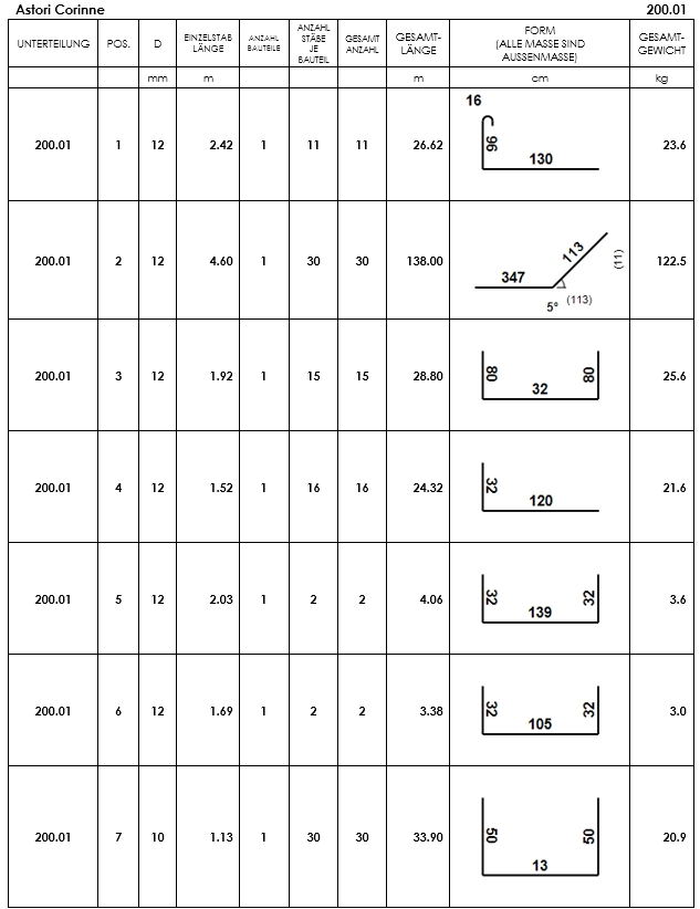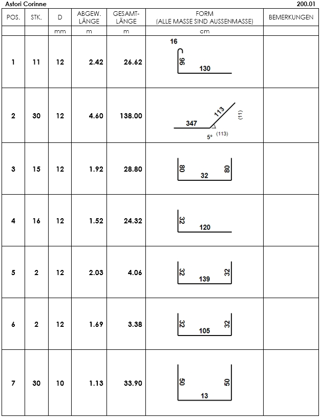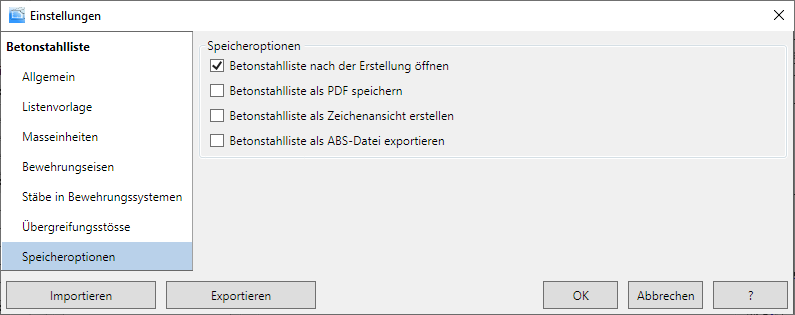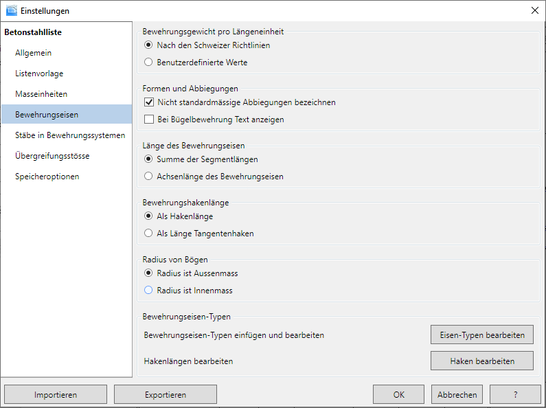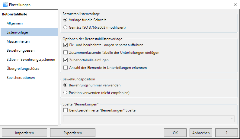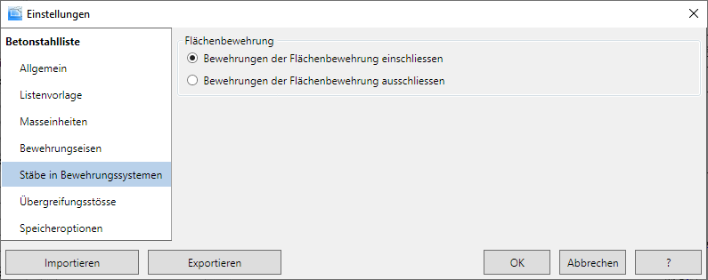 - Klicken Sie auf Betonstahlliste