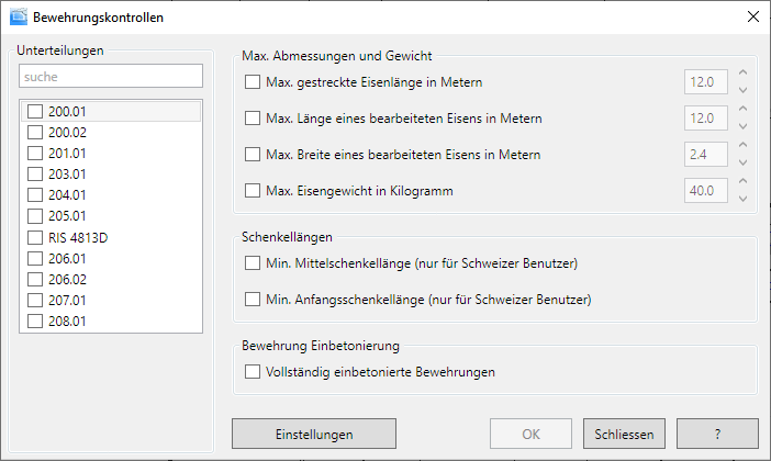 - Klicken Sie auf Bewehrung prüfen