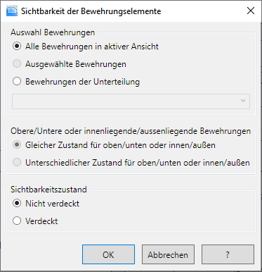 Ändert den Sichtbarkeitszustand von Bewehrungen |