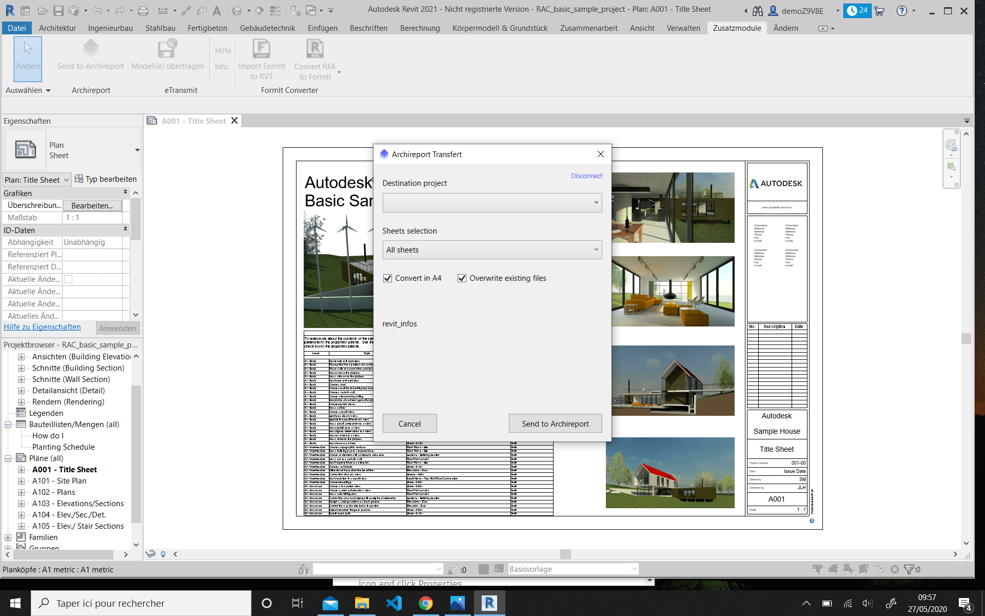 Mit dem Plug-in Archireport Transfert für Autodesk® Revit® können Sie mit nur wenigen Klicks sämtliche Pläne Ihrer BIM/3D-Modelle direkt in das gewählte Archireport-Projekt übertragen.