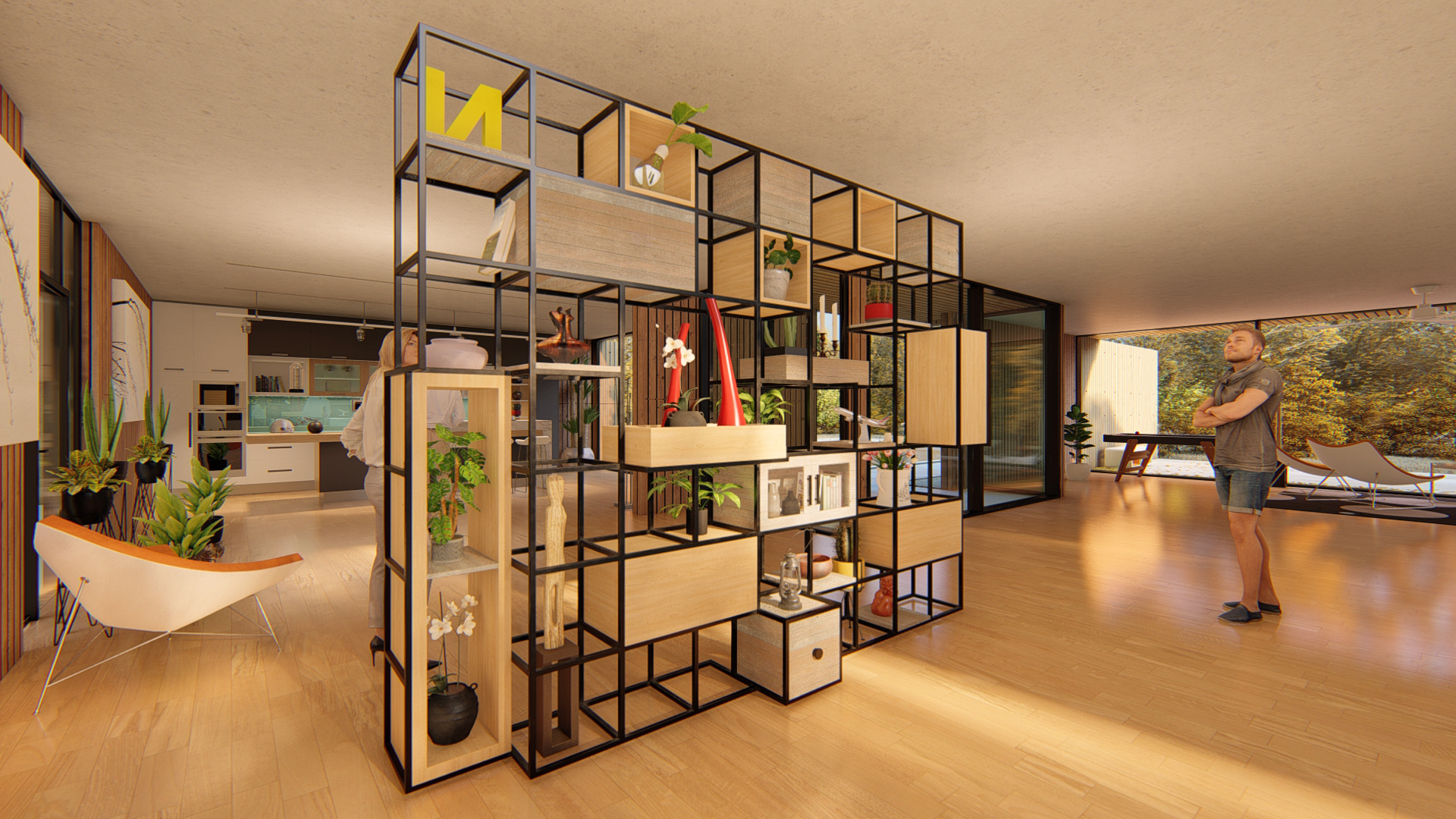 RCCS changes all that by integrating seamlessly into the native curtain wall toolset within Autodesk® Revit®. Each RCCS component is hosted within a Revit curtain wall cell (panel) and therefore has a direct parametric relationship to each adjacent RCCS component via the adjustable Revit curtain grid system. Each RCCS component within an RCCS curtain wall can easily morph into any number of cabinetry, framing, or appliance options without the designer having to leave the main interface to search for the right part for their particular storage design.