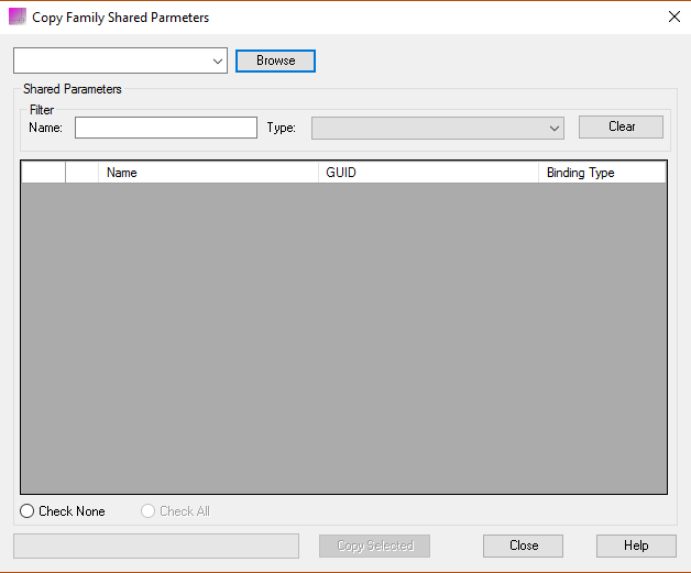 This application allows you to copy multiple shared parameters from one Family to another with as few as two mouse clicks.