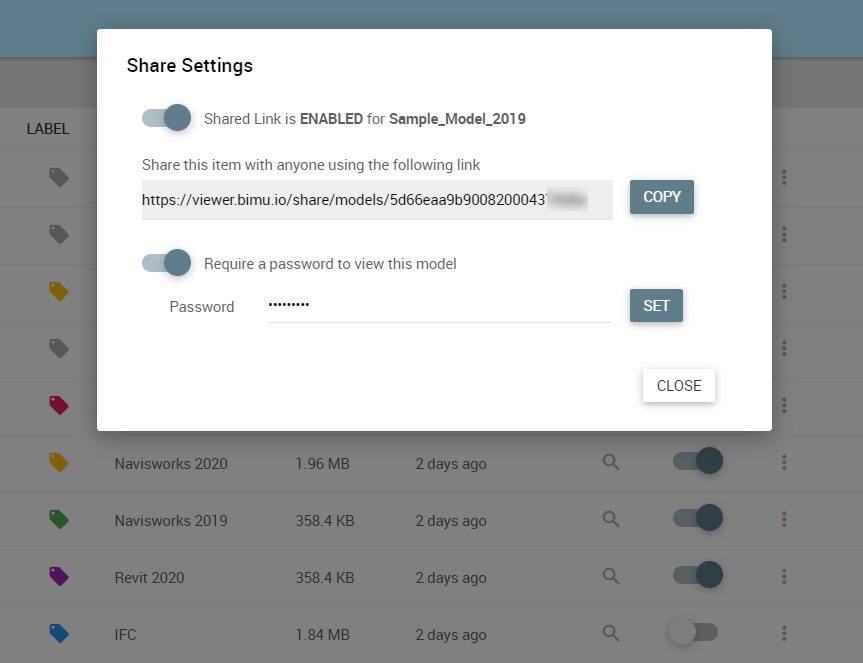- Share a BIM model publicly or with a password-protected link.