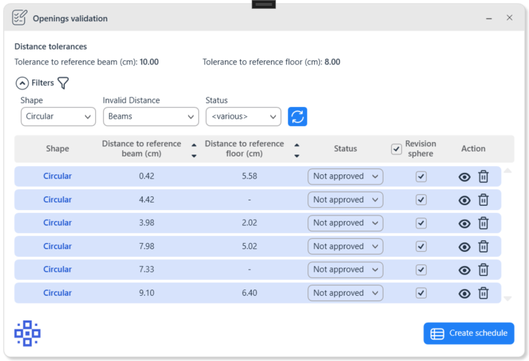 - Create review spheres for project coordination and easily highlight unapproved, under review and approved openings.