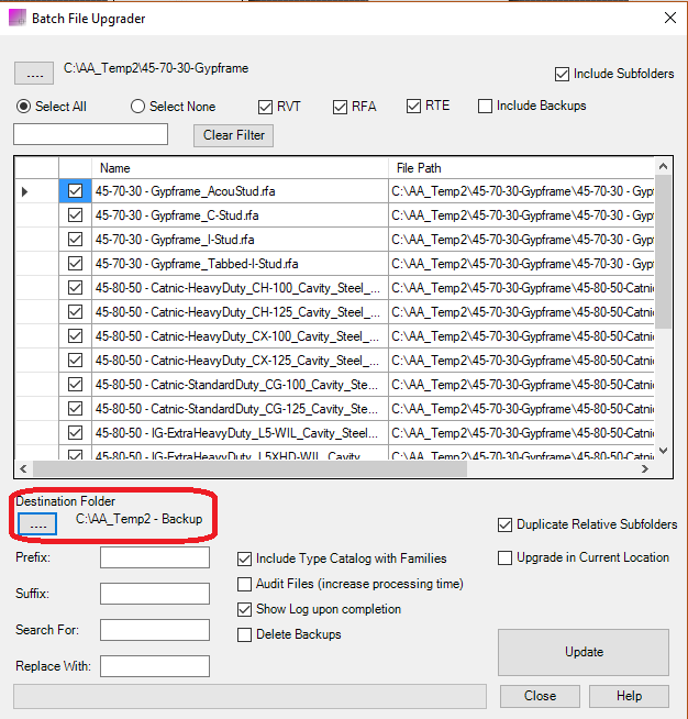 Seems that the add-in is not working in our case, although we did testing on some other files/models before and everything was in order. By selecting a folder where Revit 2019 models are stored for which we needed the upgrade, we receive a message saying: No Revit files to upgrade were found in the selected File.