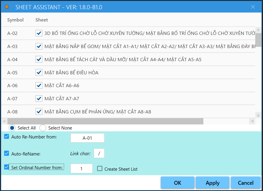 Automatically rename sheets and update sheet numbers in bulk with ease.