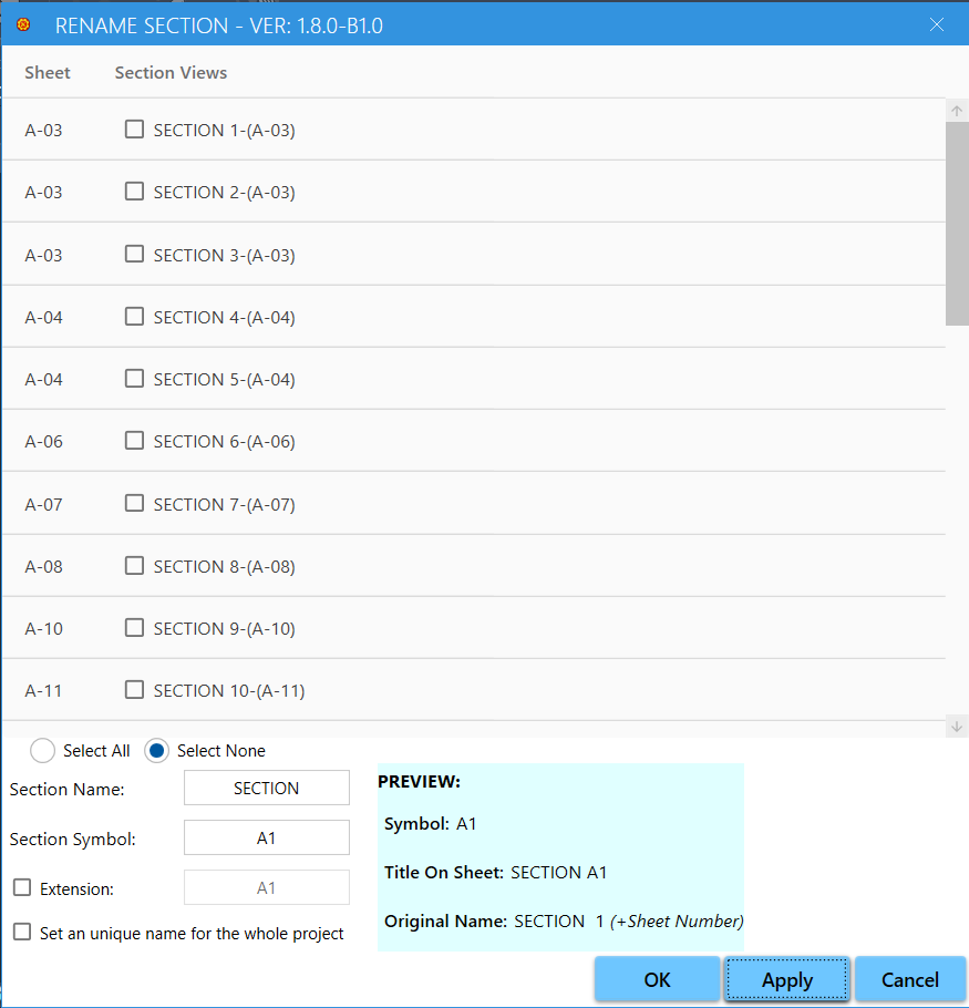Automatically rename sections and update their corresponding detail numbers, ensuring consistency throughout your project.