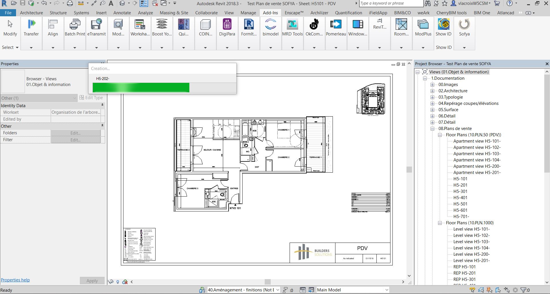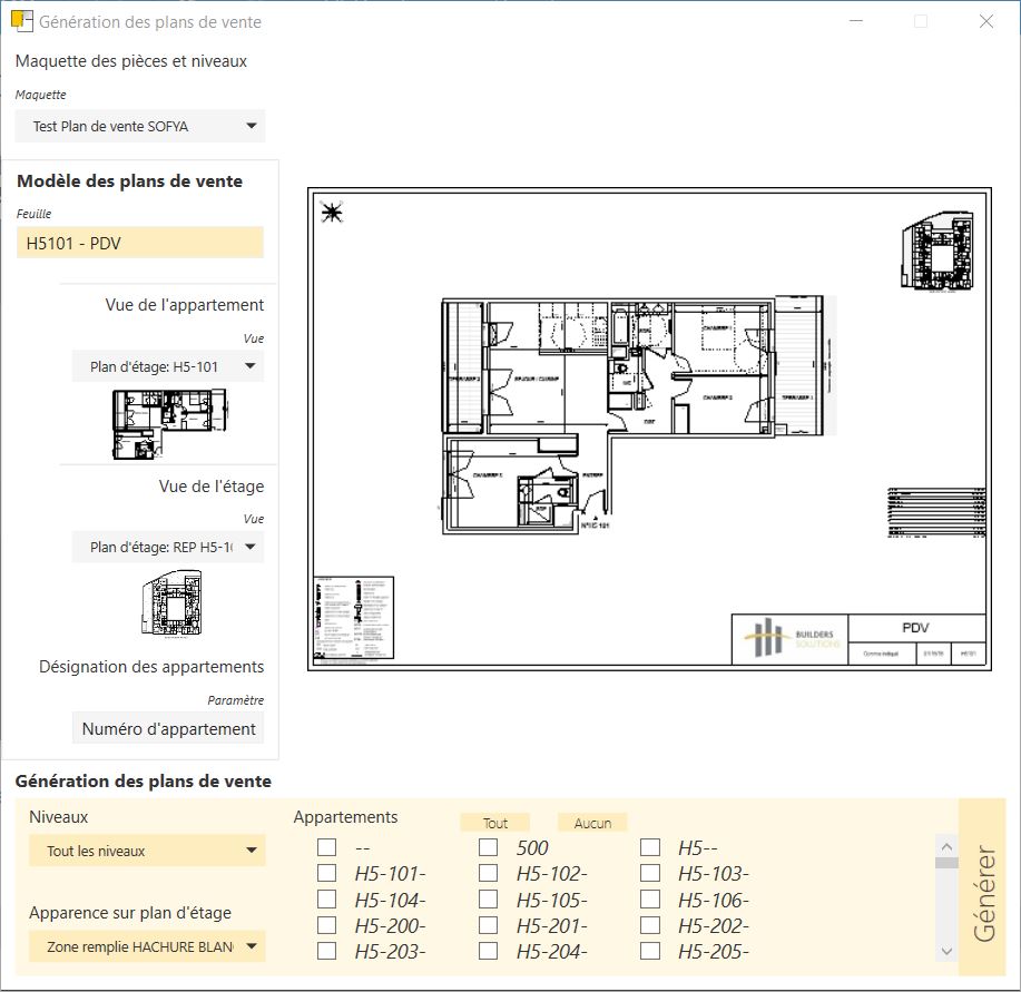 The add-in takes just one plan as a model (which contains an apartment view, a level view, and a schedule for example) and reproduces the same scheme for all the apartments you want in your model.