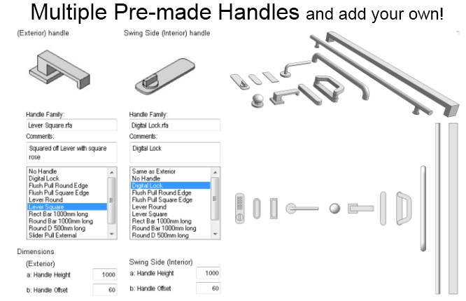 Create any hinge or double hinge door you want in seconds, without going into the family editor.
