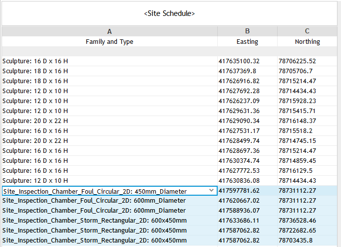 The default behavior of Revit does not allow us to schedule the spot coordinates or the Northing and Easting values of components.
