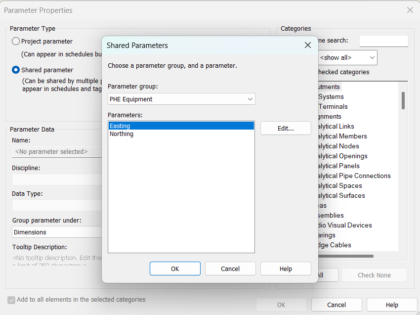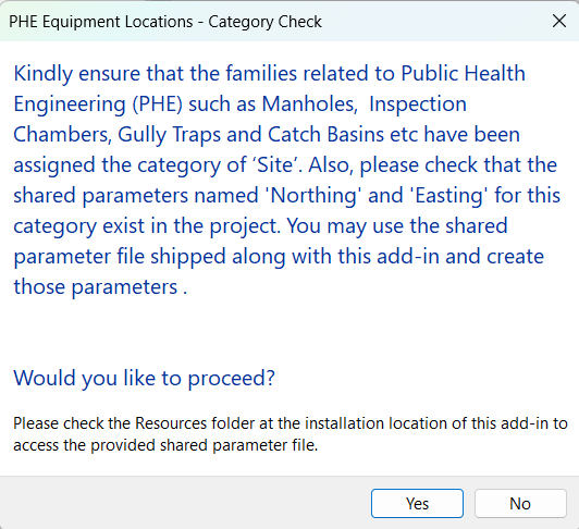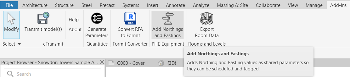 Northing and Easting parameters for PHE equipment is an Autodesk® Revit® Add-in.