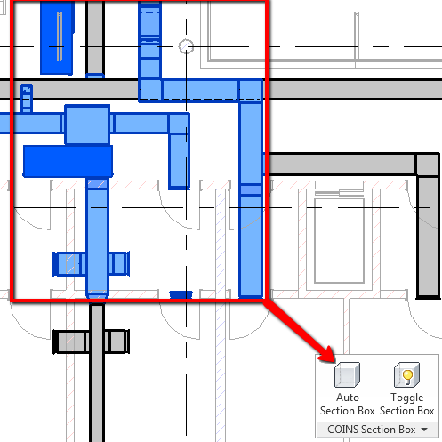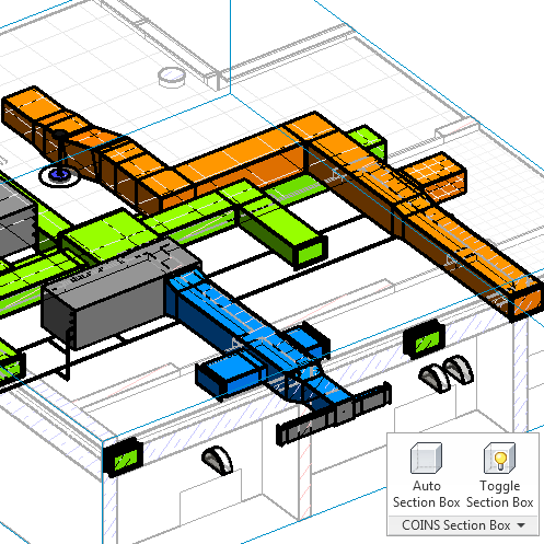 The COINS Auto-Section Box tool gives you tremendous speed and agility over managing three-dimensional views when analyzing model areas of particular interest. It allows you to quickly create temporary and permanent views to be used for immediate interrogation of the model or for construction document deliverables. This works by allowing you to focus on the model instead of managing views or a view’s properties.