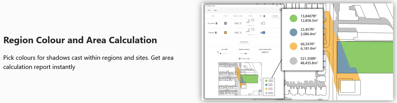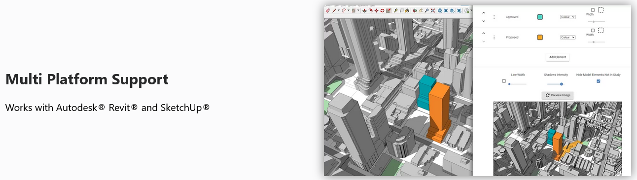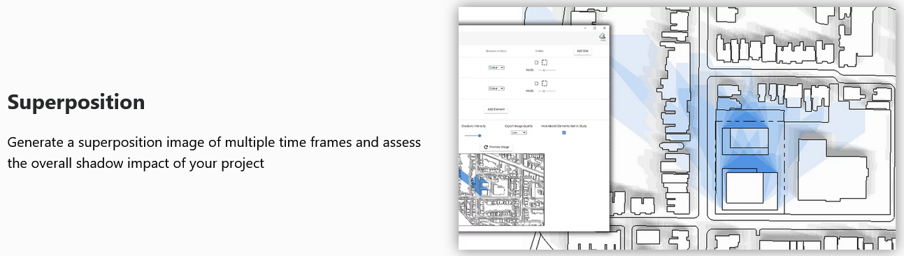 test the impact of shadows cast by the proposed development, and generate quick shadow study reports, which are fundamental to municipal approvals.
