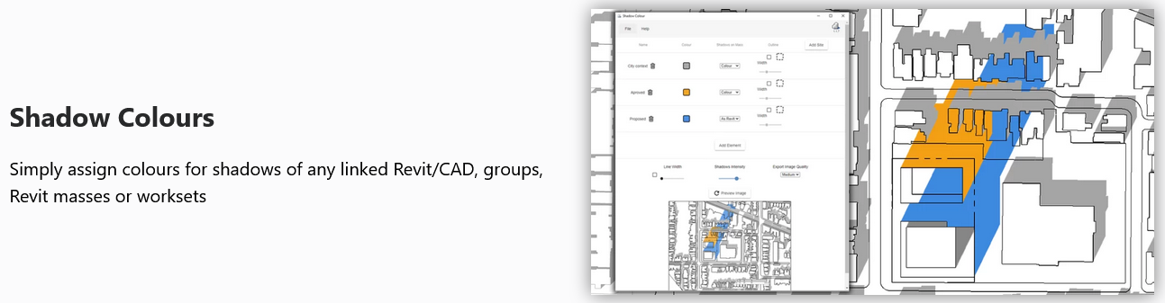 element's casted shadow, which can be a Revit mass, linked CAD, or any