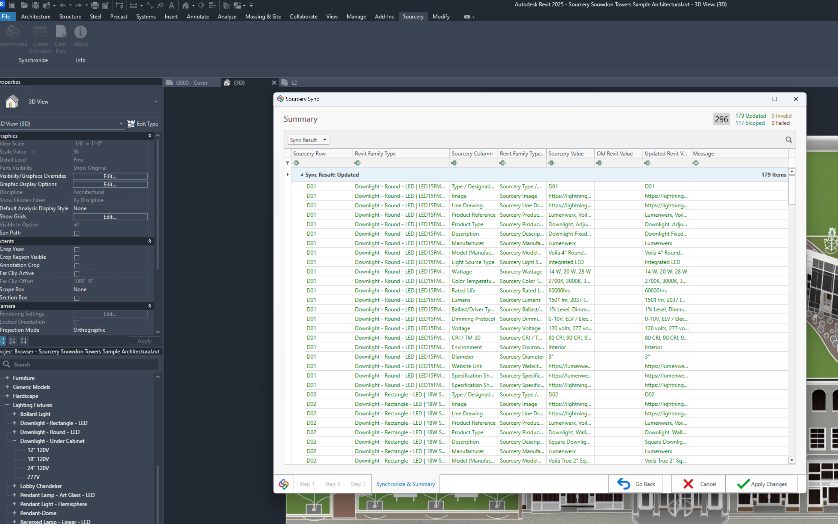 - Sourcery Sync Integration: Effortlessly synchronize your Sourcery lighting schedules with Revit to ensure accurate and up-to-date project data, enhancing both efficiency and productivity.