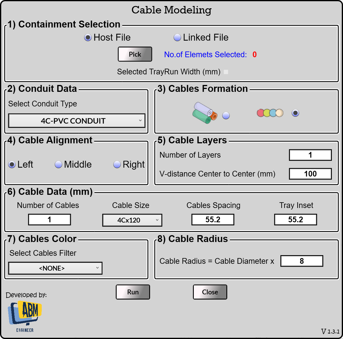 In this section, the user can specify the number of layers for vertical cables with a desired distance (Cable centre to centre).