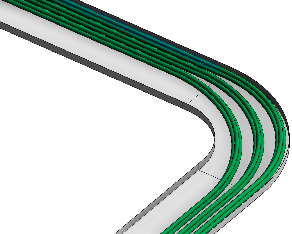 If the selected tray segments are too close together, the bending radius may not match the entered value due to limited space. To ensure the cables are modeled with the desired bending radius, users must verify there is adequate space between the segments. Alternatively, a smaller bending radius can be entered and adjusted manually afterward if necessary.