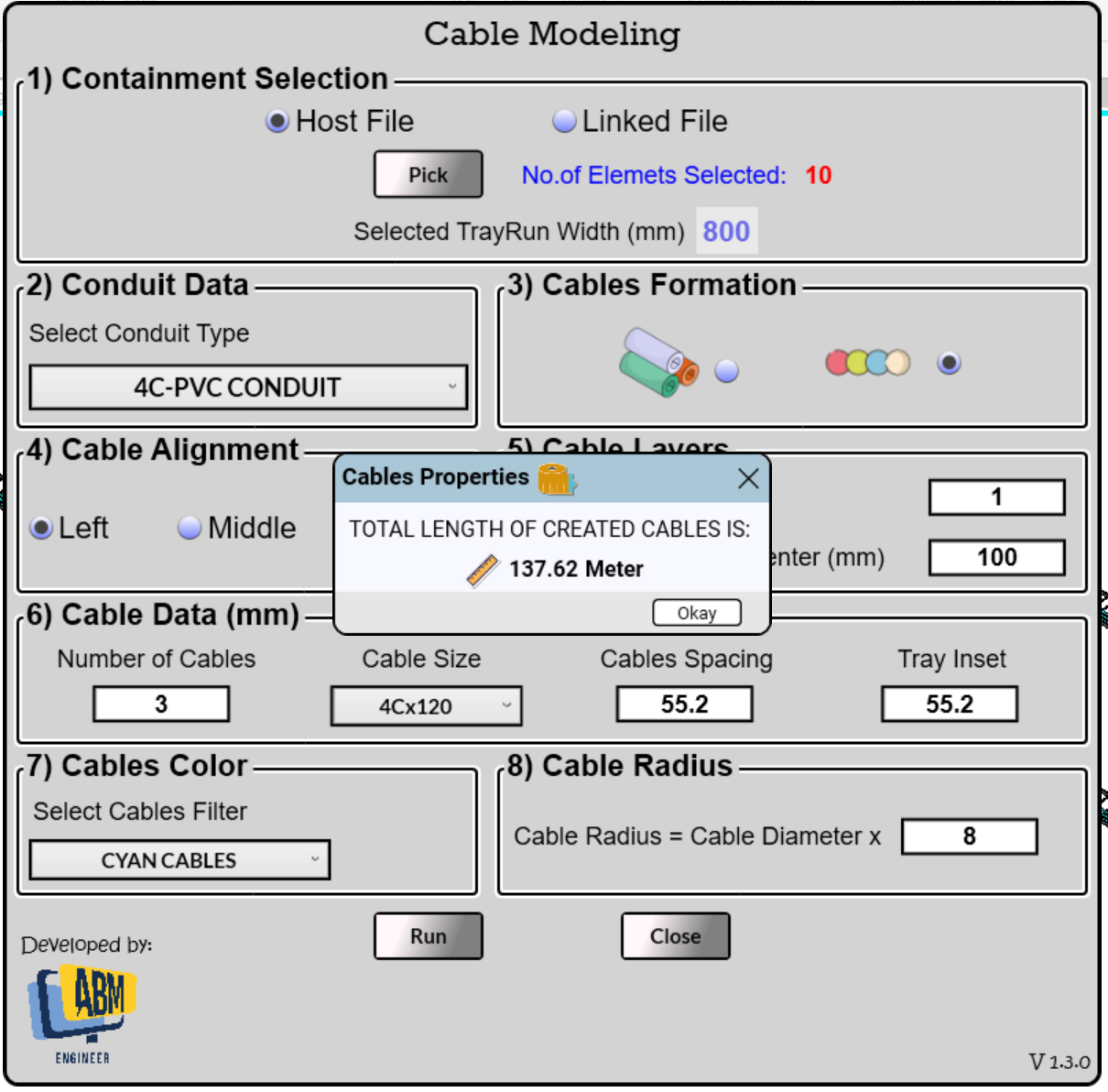 Minor Bug Fixes. Fixing Fitting Radius Issues Adding Filter Options for created Cables Overall Total Length Message |