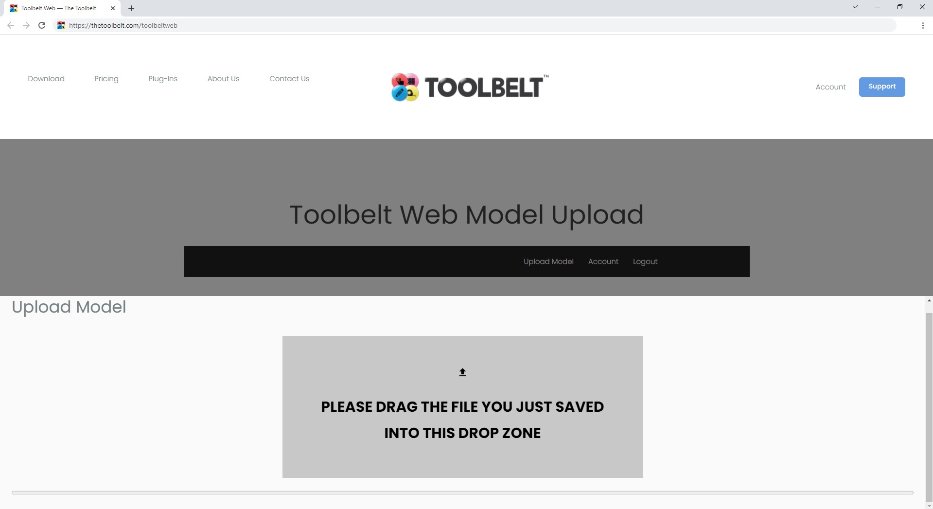 3. The exporter will open the Toolbelt Web Upload Center where you can log in with your account or sign up to create an account.