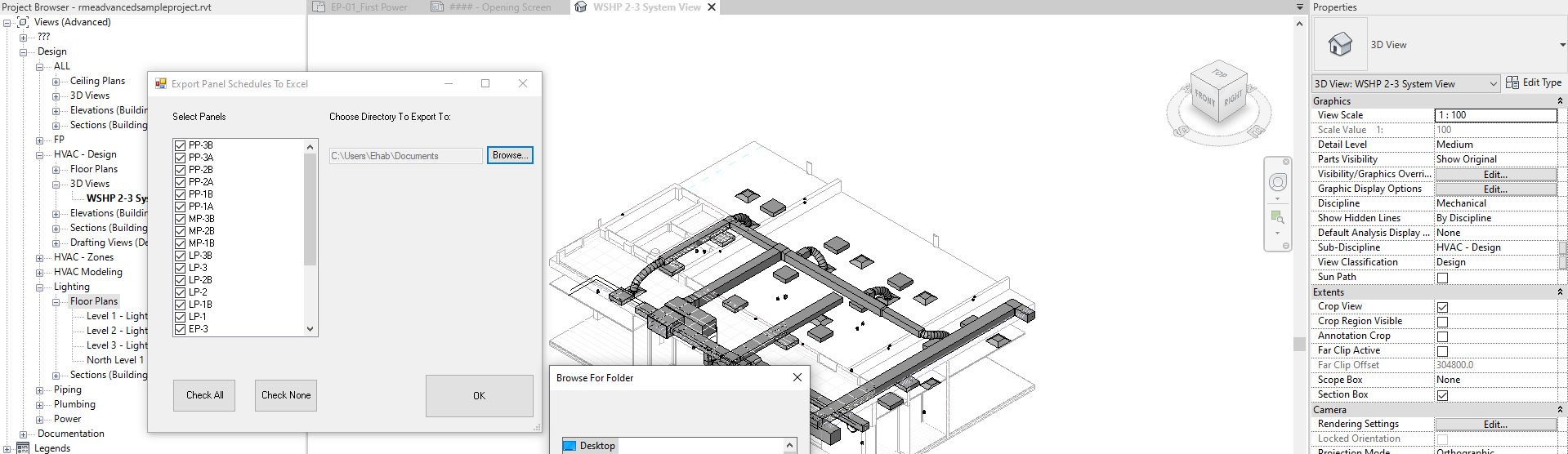 - Step1- Browse to choose the directory to export Autodesk® Revit® panel schedules to it