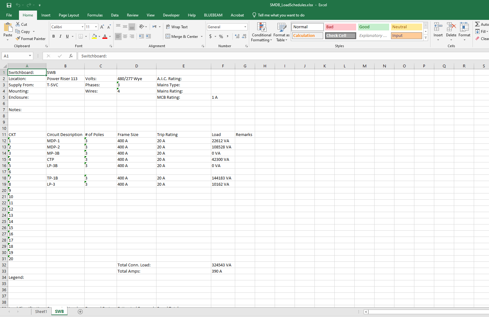 To run the application, select the button "FDB To Excel” to export branch Panel or "SMDB To Excel” to Export Switchgear Panel