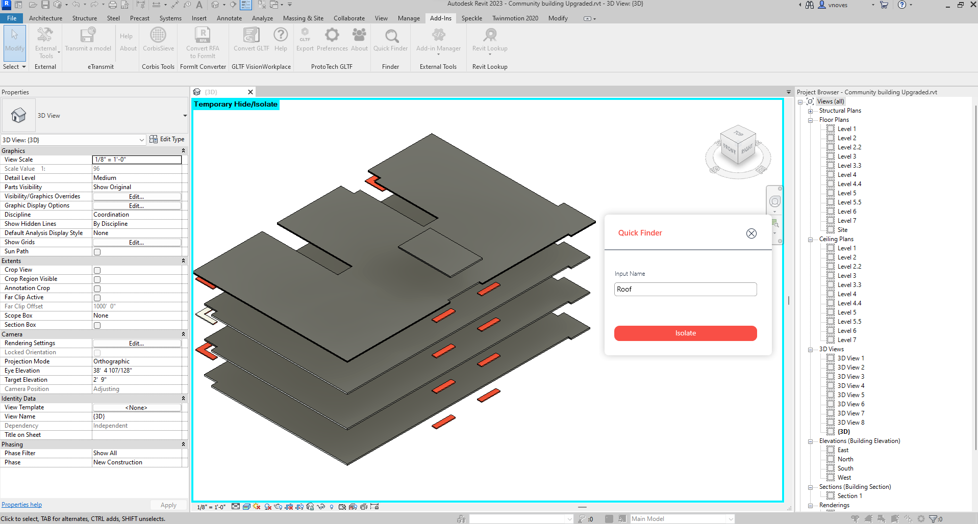 This is the initial version, introducing the feature of finding by name and type and isolating in a 3D view |