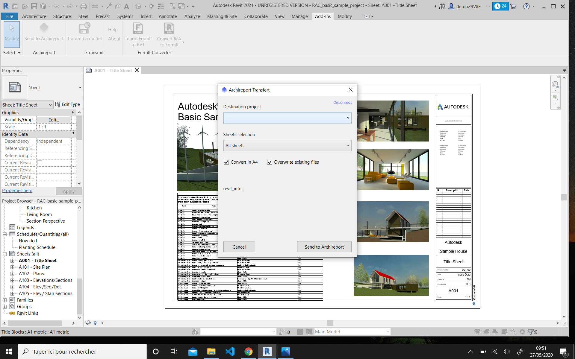 - Select the Archireport project you want to transfer the plans to